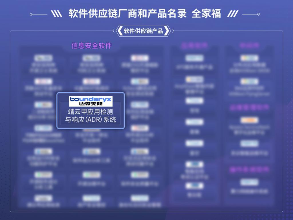 首期《軟件供應鏈廠商和產品名錄》的正式發布,旨在提升軟件供應鏈透明度,宣傳推廣一批成熟度高、具有示范作用的優秀案例,積極應對不斷出現的軟件供應鏈安全治理難題,同時為用戶選擇合適的廠商及產品提供選型指導。邊界無限靖云甲 ADR 應用檢測與響應系統,憑借其出色的技術能力與表現,成功入選至信息安全軟件領域,推進軟件供應鏈安全產業發展,助力企業提升自身安全能力,并進而建立整體應用防護體系。