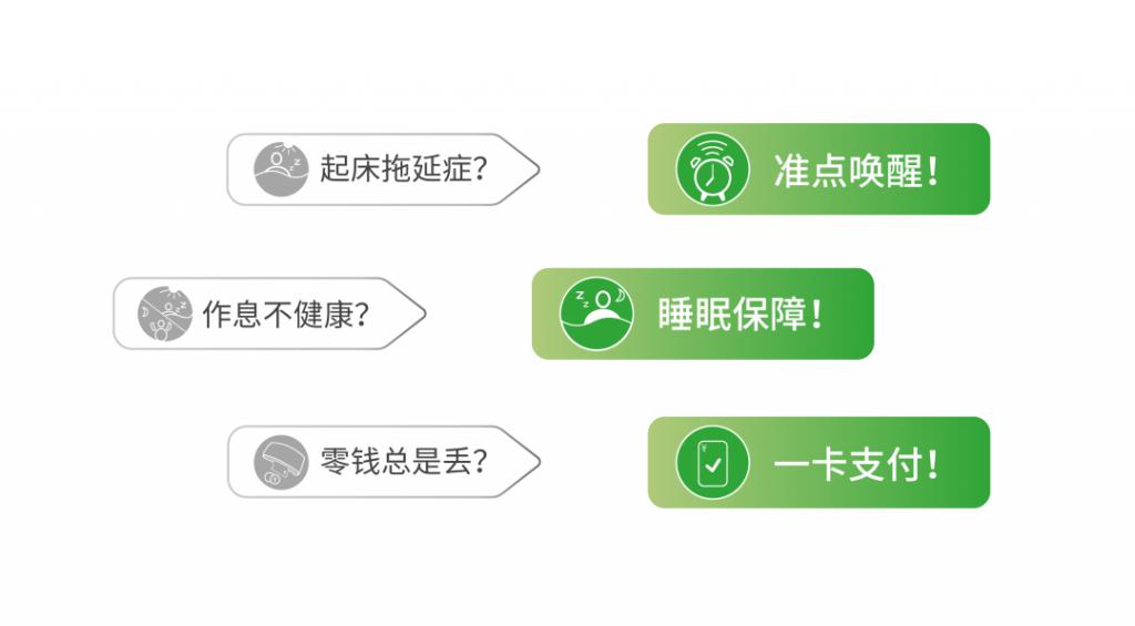 生活助手功能涵蓋鬧鐘功能、支付功能、定時開關機功能,一卡多用,實現準點喚醒、通行支付等多種生活應用。