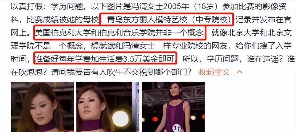 學(xué)霸高材生?假的!馮清在國內(nèi)只有初中學(xué)歷,她上的所謂伯克利大學(xué)也是假的,實(shí)際上的是伯克利音樂學(xué)院,相差兩字,實(shí)際上卻是個(gè)有錢就能上的野雞大學(xué)。