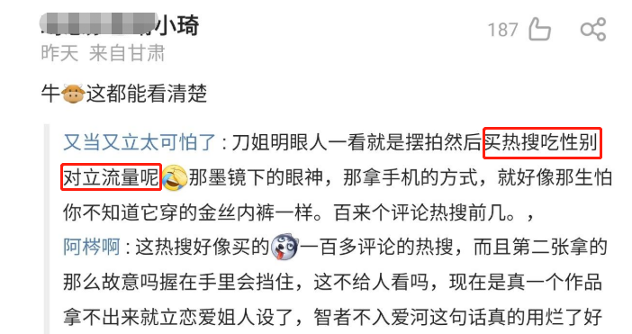 甚至有人懷疑,張雨綺在買熱搜,吃性別對立的流量。