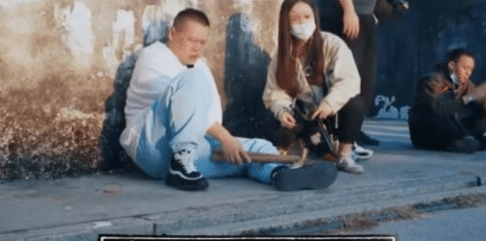 沒想到觀眾一連說了幾個字,他都唱不出來,最后實在撐不下去直接跪在孫越面前,邊跪邊笑場。