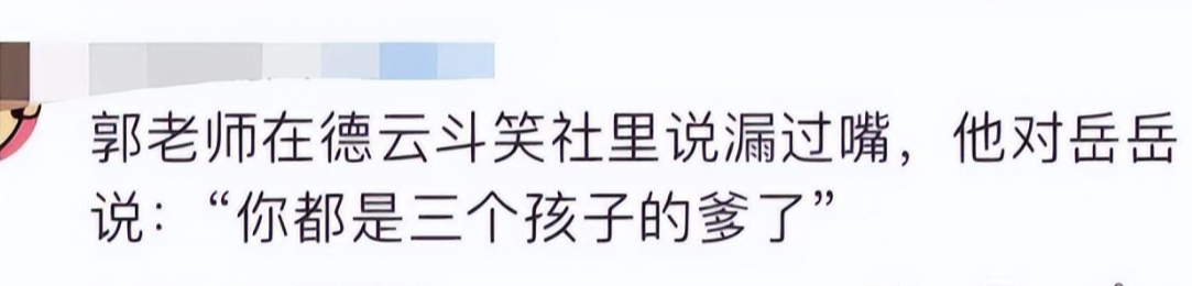 有一次郭德綱在錄制《德云斗笑社》時,無意中對著岳云鵬說了一句:“你都是3個孩子的爹了”。