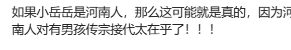 “岳云鵬家只有他一個兒子,家里又是河南農村的,肯定是要生個兒子的。”
