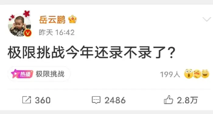 甚至公然在社交平臺上問:“極限挑戰今年還錄不錄了?”