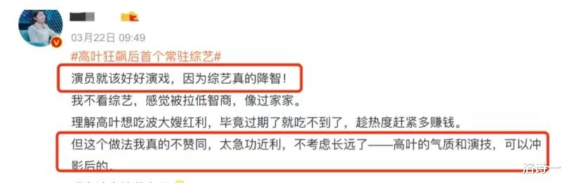 像4月8日時,網上傳出高葉35歲都從來沒談過戀愛這種新聞。本來是無需多言的,但是高葉卻直接回懟說:這屬于是罵人了