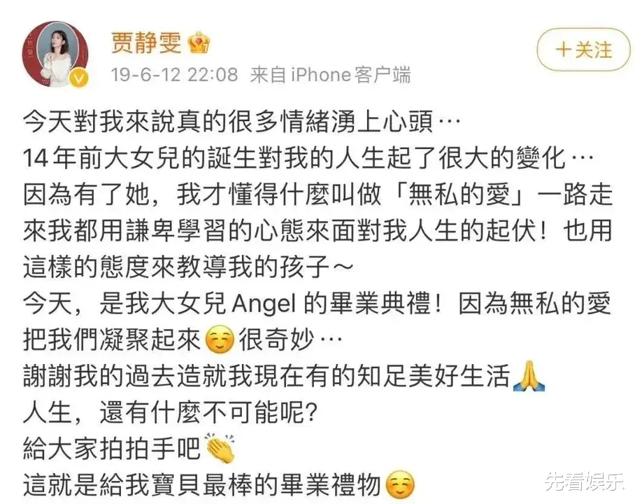 在女兒梧桐妹的畢業(yè)典禮上,賈靜雯和前夫奇妙的同框,相處間盡是釋懷。