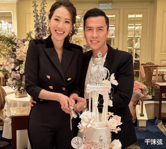 夫妻倆站在一起切蛋糕,完全看不出18歲的年齡差,甄子丹跟汪詩詩也越來越有夫妻相了,看起來非常般配。