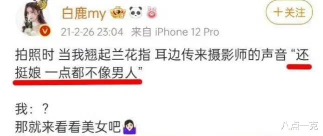有網友扒出,白鹿在早期的采訪發言中有很多涉及性別相關話語,例如自稱男孩子、男嘉賓,“還挺娘,一點都不像男人”等措辭,引發了很大的網絡輿論。
