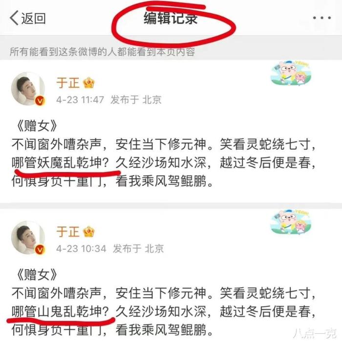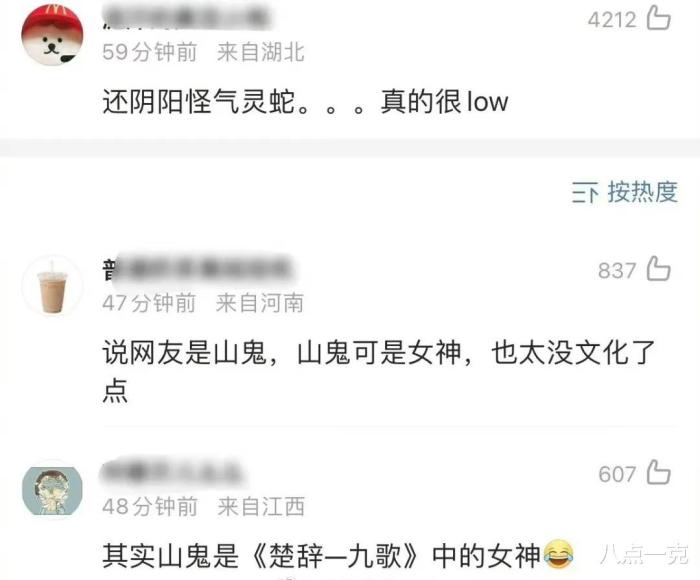 于正的新詩本來是想暗諷網友的惡評,但因為文學功底不足的緣故,他直接用“山鬼”比作惡評,但實際上山鬼是《楚辭—九歌》里面的神女,后來于正在網友的嘲諷聲中默默地把“山鬼”換成了“妖魔”。