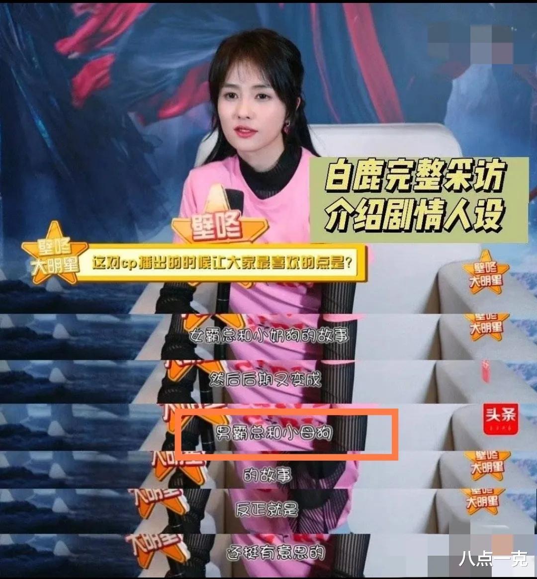 甚至還有網友發現,白鹿曾在采訪中表示,《招搖》前期是女霸總和小奶狗的故事,到了后期就變成了男霸總和小母狗的故事。不知道白鹿是詞語匱乏還是故意為之,反正在提到“小母狗”的時候,白鹿都有點忍俊不禁了。