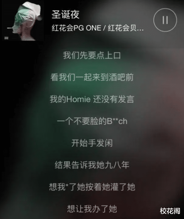 PGONE因參加《中國有嘻哈》節目而獲得全國總冠軍的殊榮,他的走紅讓網友關注到了他未出道時的音樂,《圣誕夜》便是其中一首,這首歌中充斥著“純白色的粉末”以及“bitch”的字眼,網友多次抨擊這首歌的歌詞“低俗”,但PGONE并沒有理會。