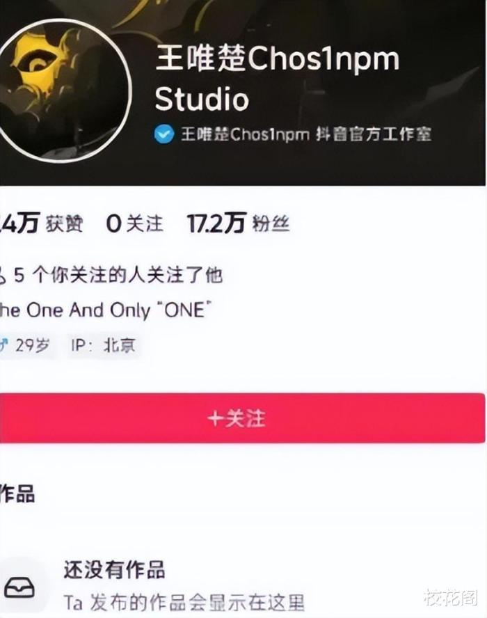 網友發現PGONE在“某音”上注冊了賬號并用“王唯楚”的名字完成了認證,賬號注冊成功不久,PGONE發布了新歌《光》的預告,他還特意露出正臉證實自己的身份,時隔整整五年,PGONE在短視頻平臺高調“復出”。