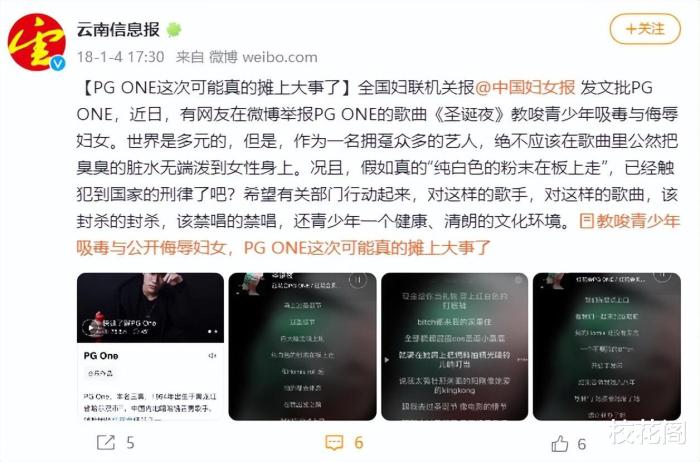 直到PGONE與李小璐的“私情”在網上曝光,網友看清了PGONE不道德無底線的“真面目”,因此他的作品再次被網友拿出來說事,關于PGONE《圣誕夜》歌詞誘導青少年“吸毒”的輿論風波在網上越鬧越大,最終引起各大官媒的注意。