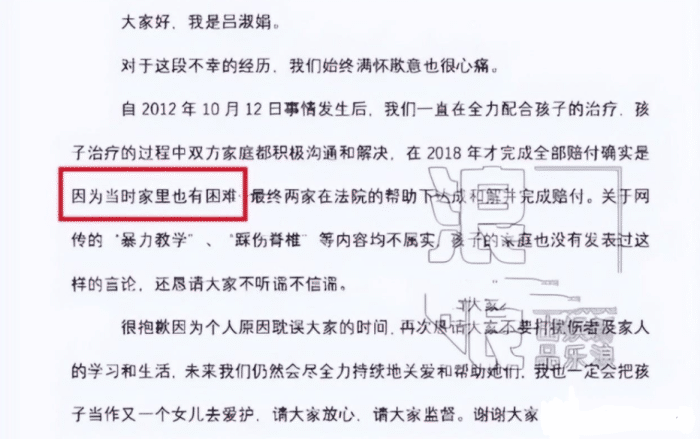 當時,劉家人還曾就此事發(fā)過聲明,表示沒有支付賠款的原因,居然是家里苦難。