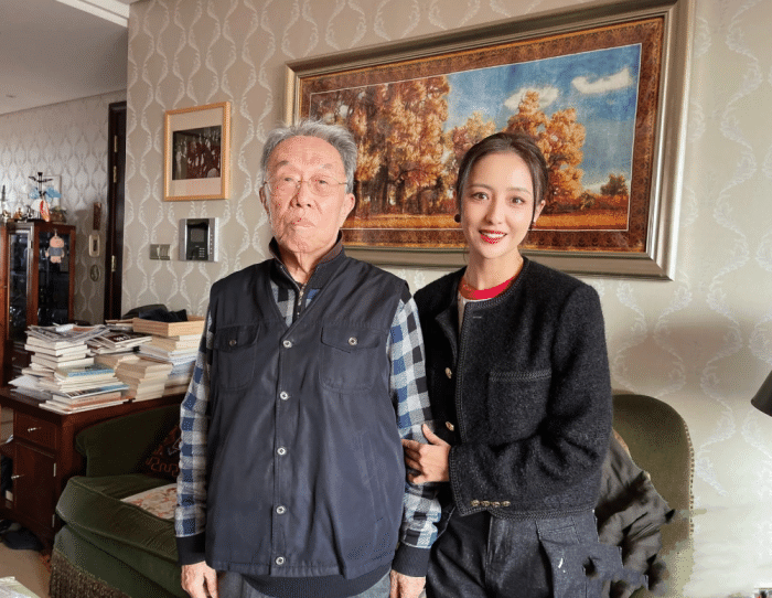 可以看得出來佟麗婭拜訪王蒙之前也是做足了功課,穿衣得當,沒有穿得花枝招展也盡顯端莊。
