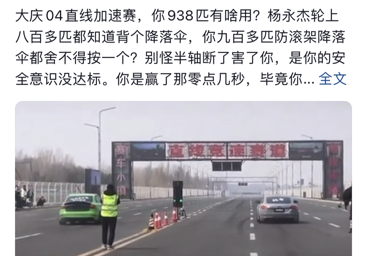 據了解,張雷所跑的項目為04直線加速賽,這項賽事雖然刺激性很大,但危險系數非常高,選手楊永杰每次上這樣的賽道都會配備降落傘(八百匹),而張雷所開賽車配備900多匹的防滾架降落傘,事發的時候他并沒有使用,由此來分析,張雷在安全意識方面并不是很充足。