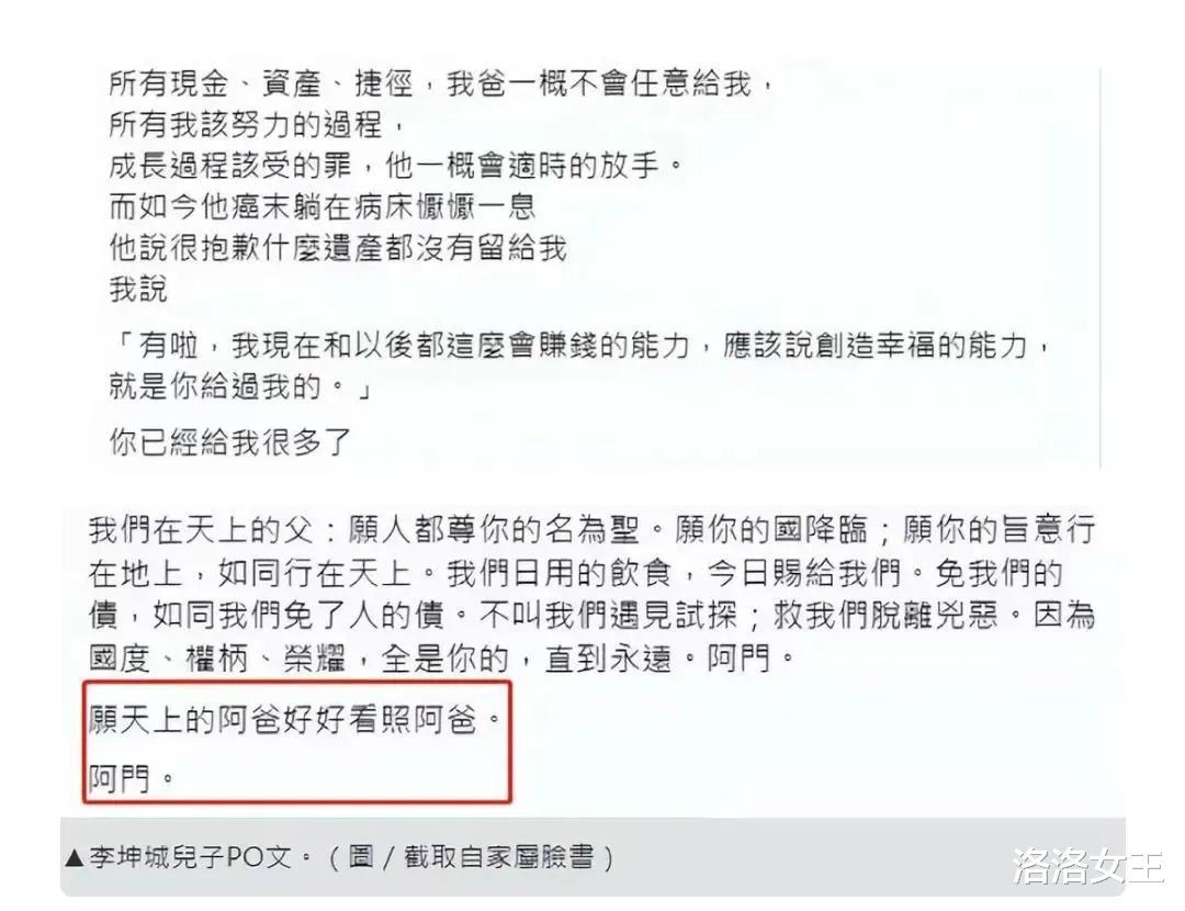 但其實并沒有,李坤城的兒子早就明確表態:父親的遺產一分錢都沒有留給他。