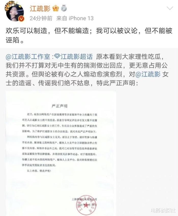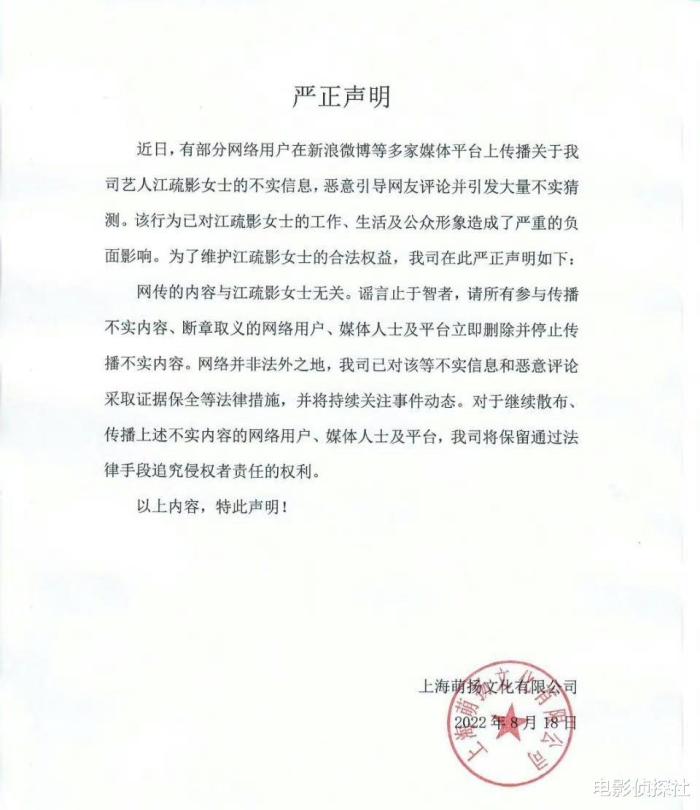 要知道,江疏影去年被曝在海南和富豪約會的時候,工作室第一時間就現身否認了,下圖是去年的聲明,時間是2022年8月18日。