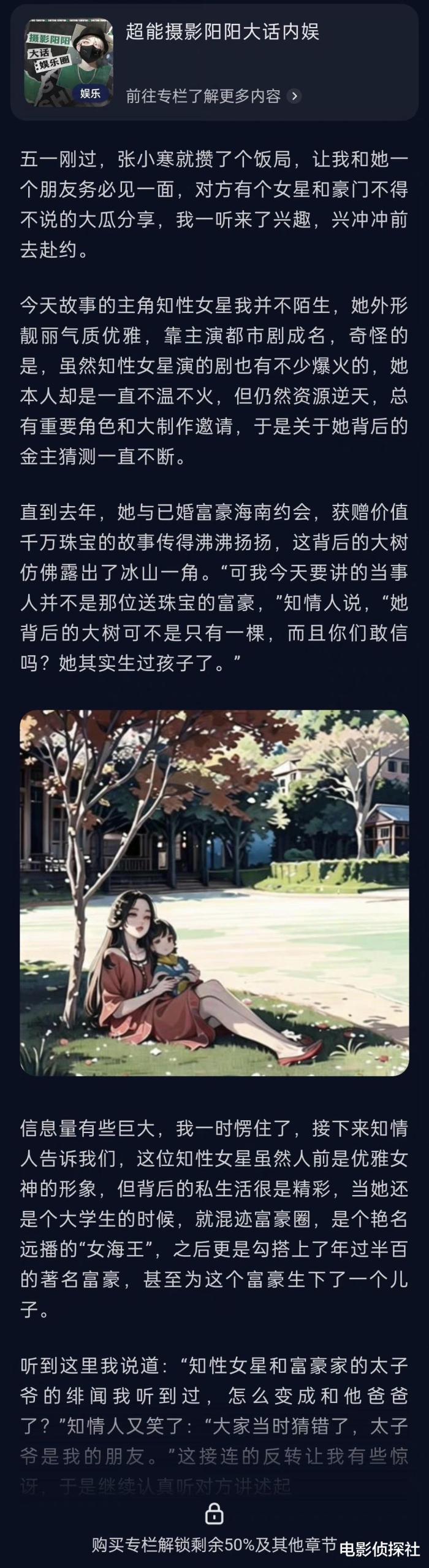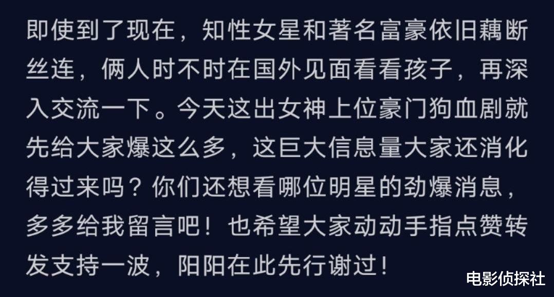 回看昨天的爆料,娛記詳細講述了知性女星知三當三的細節,同時爆料其已經生下了富豪的孩子,現如今兩人會相約國外看孩子。