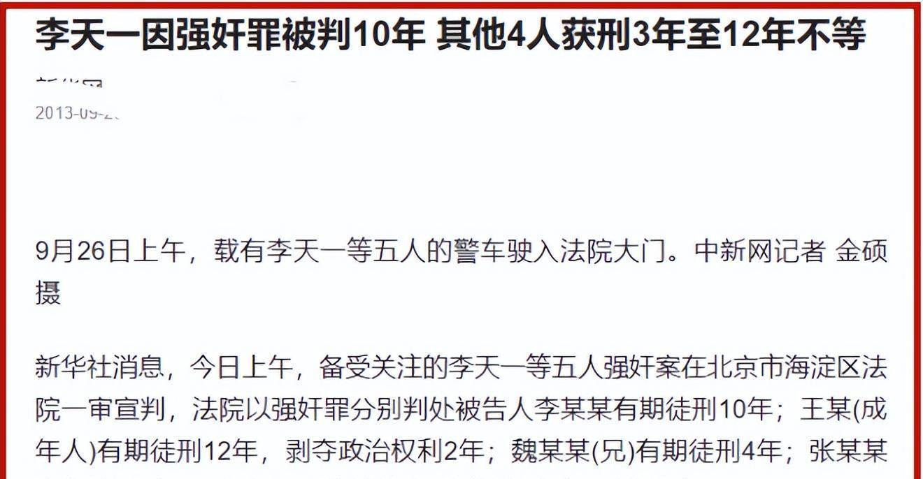 這件事情一被媒體爆出就引來了眾多聲討,李天一因此被判進入少兒拘留所一年。