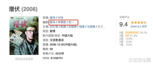 同時,在9.4分的大作《潛伏》中,林黎勝也是其中的編劇之一。