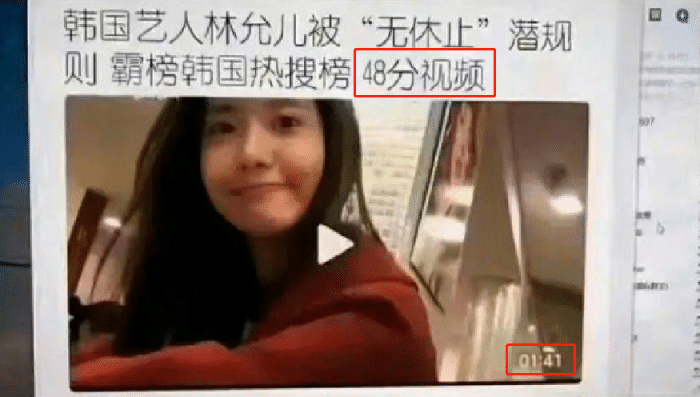 照片的內容很明顯是從電腦屏幕上拍攝而來,上面標著十幾個大字《韓國藝人林允兒被“無休止”潛規則,霸榜韓國熱搜榜,48分鐘視頻》。