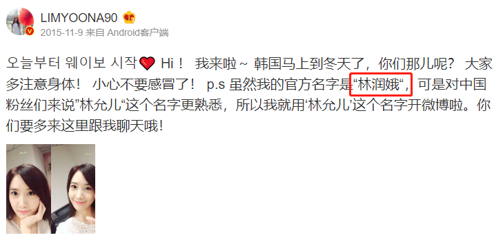 所以在2015年開通我們國內社交平臺時,她第一個做的便是重新“更正”自己的名字林允兒。