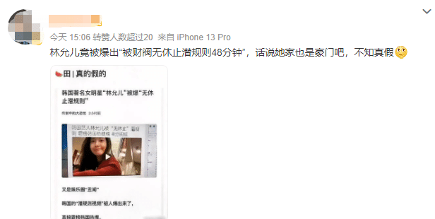 也有網友分析稱,雖然潛規則這事兒在韓國不是什么新鮮事兒,但不排除有資本針對林允兒六月的新劇故意抹黑。