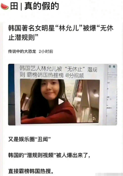 但根據其他網友稱“畫面看哭了”的評論,似乎林允兒被潛規則的瓜是個實錘。