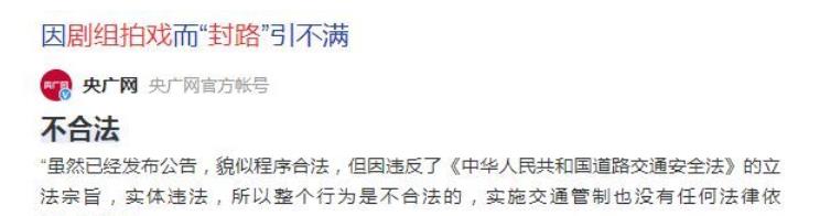 為了拍戲而封路,這樣的行為,顯然是不合理的。