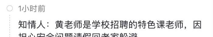不久前,有知情人稱,因為擔心安全問題,黃老師已經請假回老家躲避了。