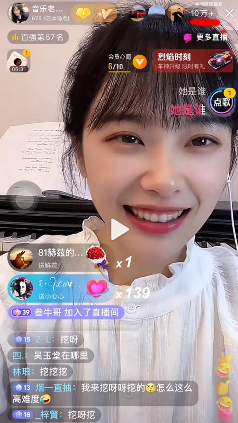一開播,人數迅速超過10萬加,而且各種禮物不斷。