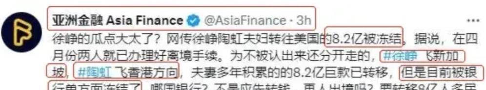 05,徐崢陶虹被爆出境,攜帶8.2億資產被美國銀行凍結