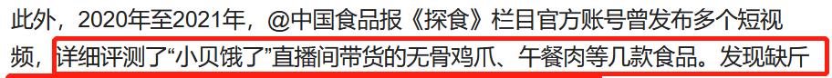 而有權威賬號曾測試“小貝餓了”直播間的多款產品,發現確實存在不少的問題。