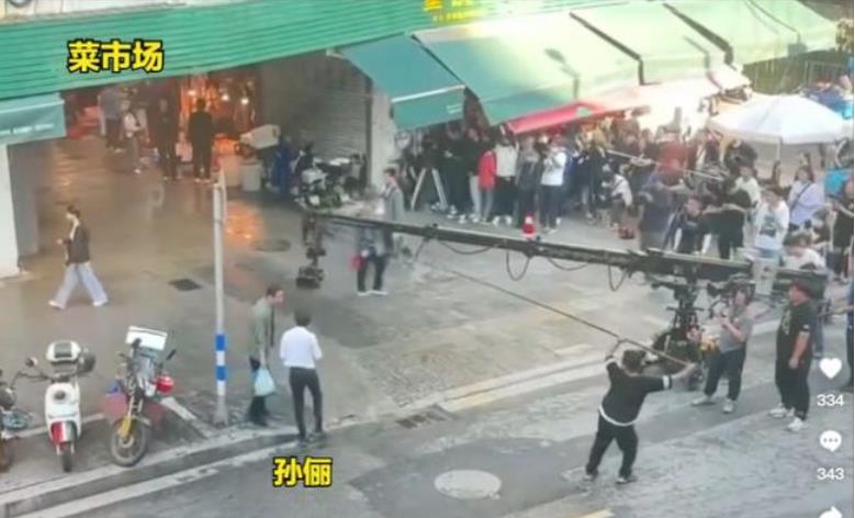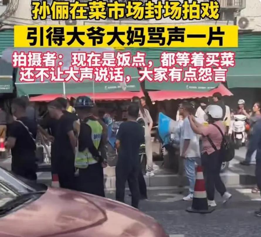 為了拍攝孫儷在菜市場的戲,劇組直接拉起警戒線,封閉了菜市場的道路。