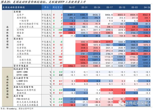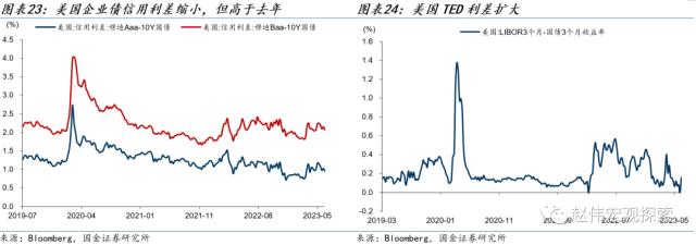 澳大利亞、加拿大意外加息。加拿大基準利率提高0.25個百分點,達到4.75%;澳大利亞現金利率提高0.25個百分點至4.1%。美國財政部資金余額回升,截至6月7日,TGA賬戶余額回升至775億,美國金融條件處于寬松區間,美國企業債信用利差縮小,銀行存款回升,但美聯儲BTFP工具使用量上升,TED利差擴大。