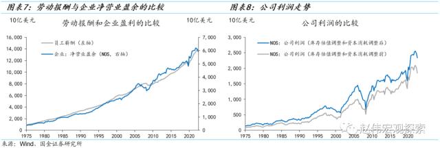在美國GDI中,勞動報酬占絕對主導地位。1971年以來,勞動報酬在GDI中的比重分布在50-60%之間,均值為55.4%,2023年1季度為53.6%(2015年以前占比下行,此后占比回升)。凈營業盈余(含企業利潤)的占比分布在20-25%之間,均值為22.8%,2023年1季度為22.7%。2022年4季度和2023年1季度實際GDI回撤的主要解釋是企業凈營業盈余的下降,勞動報酬仍維持在正增長區間。相比2022年2季度的高點,凈營業盈余已累計回撤4.5%,其中,經庫存估值和資本消耗調整前后的公司利潤分別回撤10%和8%。