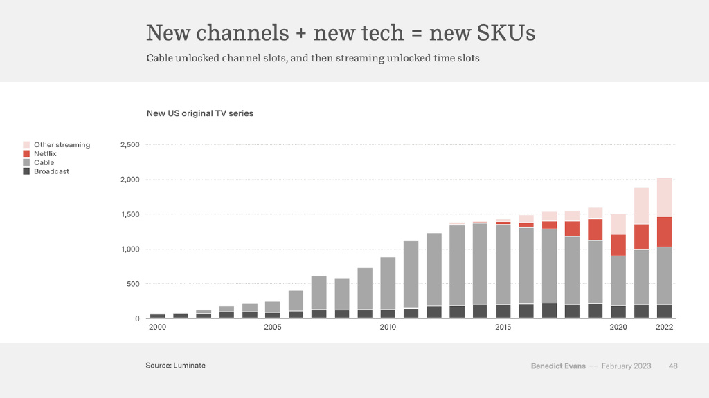 就電視節(jié)目而言,不存在所謂的網(wǎng)絡(luò)效應(yīng)。在好萊塢,即便你擁有最先進(jìn)的軟件產(chǎn)品,你也只需要 5 美元就能買到一杯拿鐵咖啡。因此,相比于預(yù)算,內(nèi)容則顯得更為重要。即便沒(méi)有預(yù)算,但如果你的電視節(jié)目很好看,你仍然可以吸引大量觀眾。反之亦然,如果節(jié)目不好看,預(yù)算再多也不會(huì)吸引到觀眾。