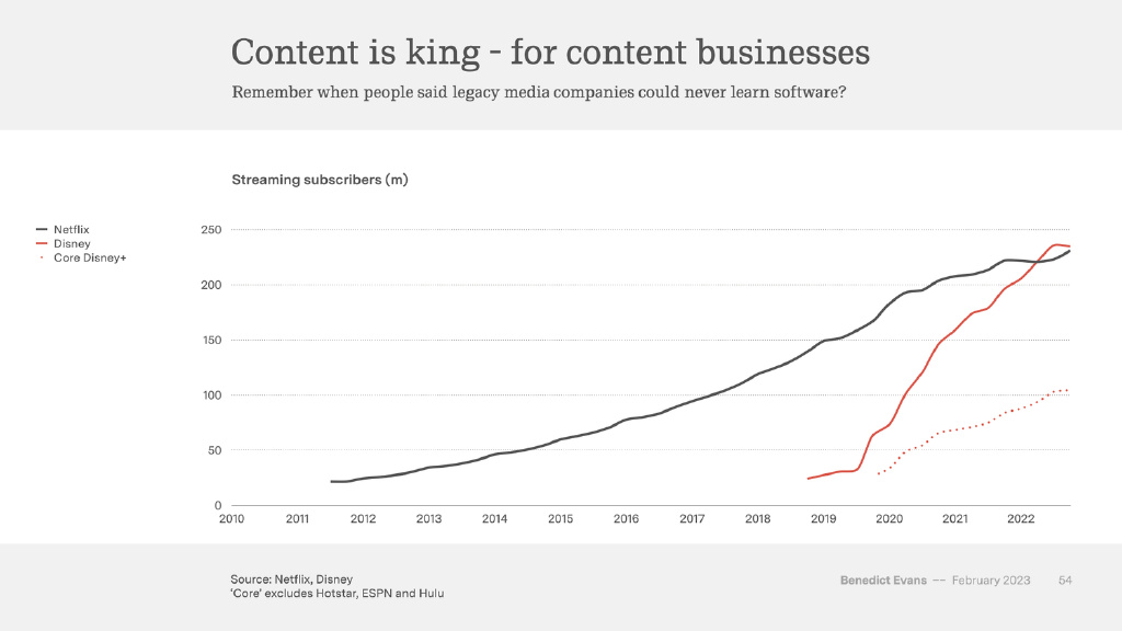 不可否認(rèn)的是,Netflix 的確能夠像任何傳統(tǒng)的電視公司一樣制作高品質(zhì)的電視節(jié)目,但迪士尼推出的軟件產(chǎn)品是和 Netflix 一樣好嗎?事實(shí)上,這完全沒(méi)必要。它只需要推出比較好的軟件產(chǎn)品,畢竟,“軟件問(wèn)題”并不是其核心業(yè)務(wù)問(wèn)題。然而,對(duì)于“軟件問(wèn)題”是核心業(yè)務(wù)問(wèn)題的領(lǐng)域,我卻沒(méi)有看到任何媒體公司如今在與 YouTube 或者 TikTok 競(jìng)爭(zhēng)。