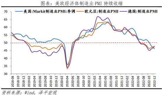 出口和外需大幅回落,意味著擴(kuò)大內(nèi)需、拼經(jīng)濟(jì)的重要性緊迫性提升。11月出口同比-8.9%,比10月降幅擴(kuò)大8.7個(gè)百分點(diǎn),增速創(chuàng)2020年3月以來(lái)新低。主因海外需求回落拖累,對(duì)發(fā)達(dá)經(jīng)濟(jì)體出口和高技術(shù)產(chǎn)品出口均明顯下滑。我們維持做好應(yīng)對(duì)全球經(jīng)濟(jì)新一輪衰退周期的判斷。出口大幅回落,主要受美歐經(jīng)濟(jì)放緩?fù)庑枋湛s影響,12月美、歐、日、韓的制造業(yè)PMI指數(shù)分別為46.2%、47.8%、48.9%和47.1%,全球制造業(yè)PMI降至48.6%,連續(xù)四個(gè)月收縮。在外需持續(xù)大幅回落的背景下,穩(wěn)增長(zhǎng)擴(kuò)大內(nèi)需的重要性提升,新基建、穩(wěn)樓市、降息降準(zhǔn)等值得期待。