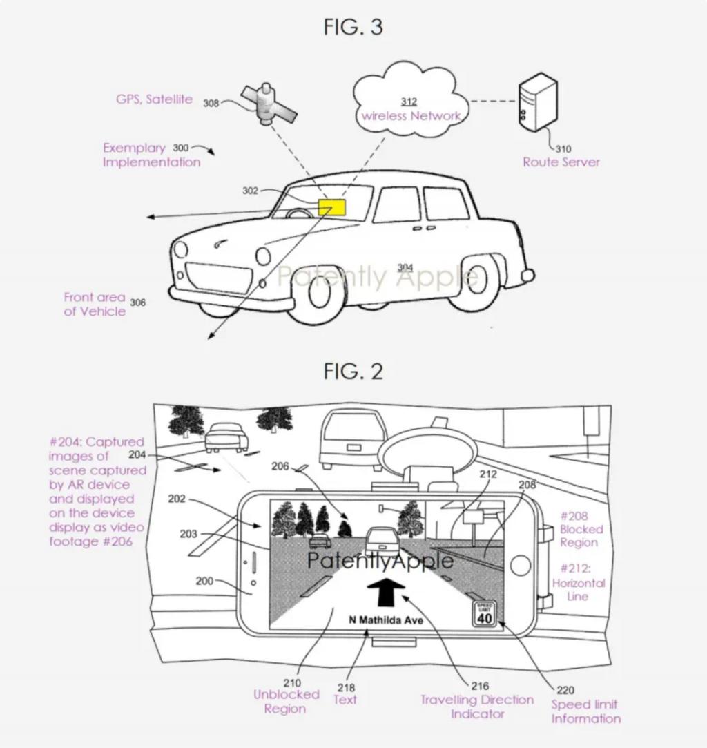 (蘋果的 " 利用移動設(shè)備的 AR 技術(shù)為車輛導(dǎo)航 " 專利)