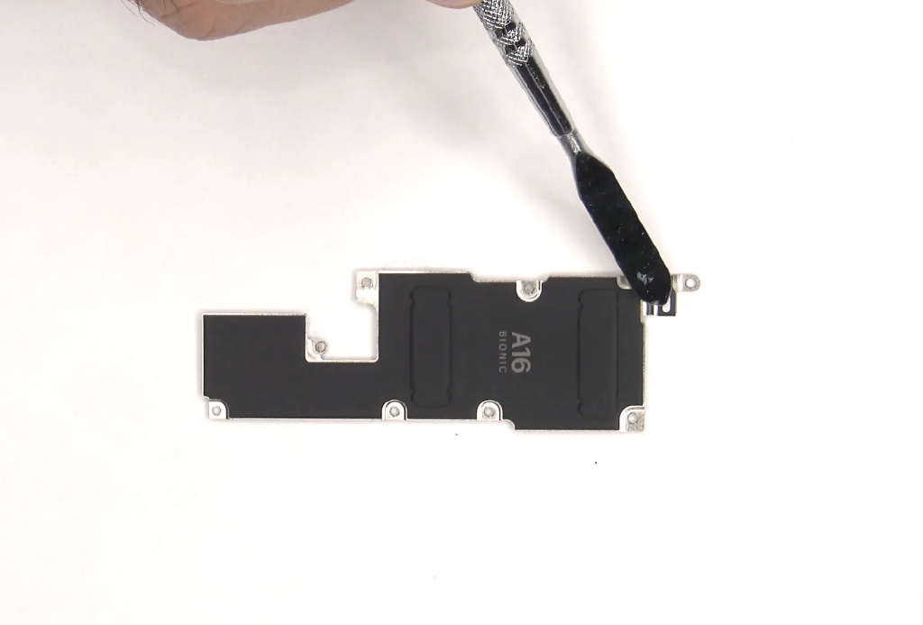 iPhone 14ProMax主板采用雙層結(jié)構(gòu),根據(jù)機(jī)身內(nèi)部架構(gòu)進(jìn)行獨(dú)特定制,A16仿生處理器上面有醒目標(biāo)志。根據(jù)蘋果在發(fā)布會上介紹,新機(jī)擁有更好的散熱系統(tǒng),主板上覆蓋一塊金屬板及石墨墊,吸收熱量快速傳輸確保性能持續(xù)滿血輸出。