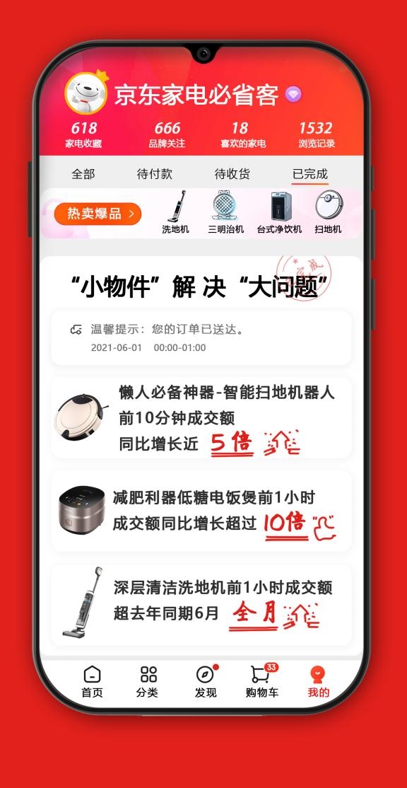 6 月1 日零點剛過,京東家電全品類就呈現爆發式增長,其中小家電憑借細分功能、超高顏值贏得了年輕消費群體的青睞:洗地機1 小時成交額超去年同期6 月全月,低糖電飯煲1 小時成交額同比增長超過10 倍,兩季電器28 分鐘銷售額超去年全天……智能化、高顏值、細分功能小家電品類備受矚目。