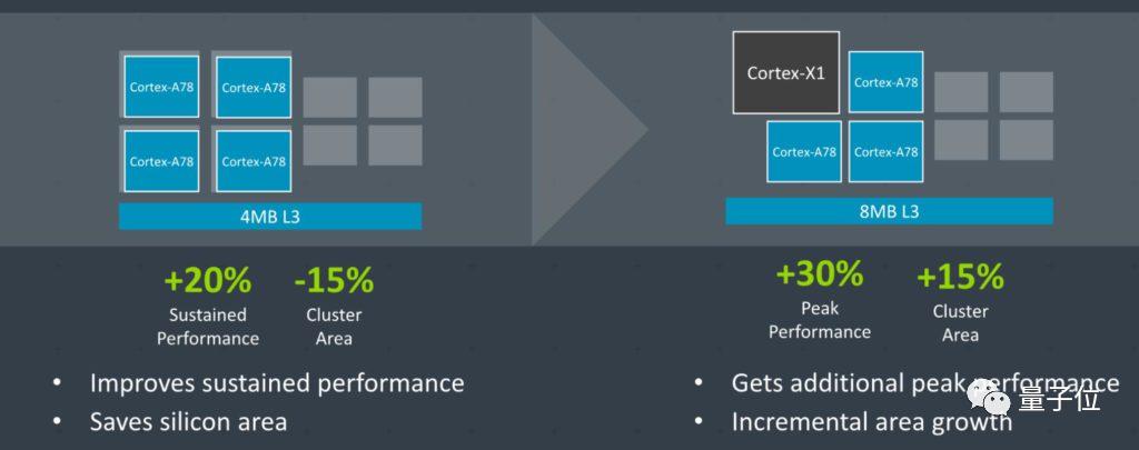 甚至高通還在研發(fā)中的驍龍 875,被曝光在這種架構基礎上還增加了一個 " 超大核心 "Cortex X1。總共 1+3+4 構成 8 個核心。