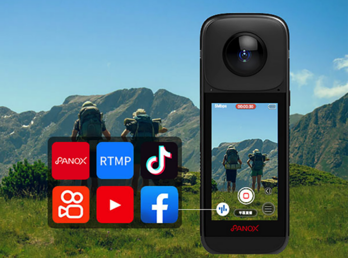 PanoX V2支持4k30fps的全景直播,不僅可以直播,還擁有強大的錄制直播畫面功能,同時支持實時HDR功能,幀幀清晰帶來酣暢淋漓的快感,讓人耳目一新。不僅如此PanoX V2 支持通過抖音,快手等主流社交平臺進行一鍵全景直播,在RTMP/RTSP直播協(xié)議加持下,用戶可以隨心所欲自定義直播平臺。