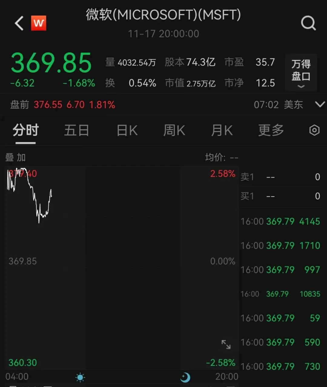 或受此消息影響,微軟的股價盤前一度漲超2%。此前,在11月18日,尾盤一度跳水2%。